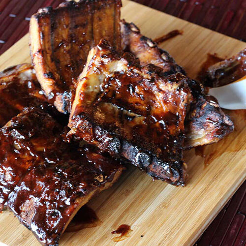 Brown on the sauce for 5 minutes a side burning the sauce on but make sure you don’t burn the ribs.